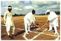YegenaChewata is played with a crude hockey stick - gena, and a small wooden ball - rur. Men and boys participate. Players dress in short pants cut to above the knee, and wrap a cloth - dig -around the waist, when they play.